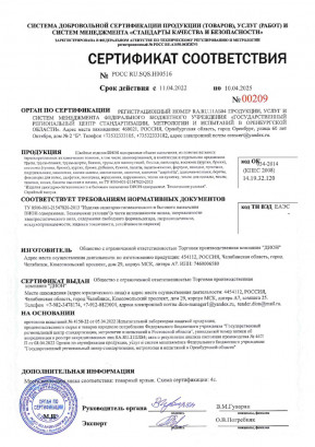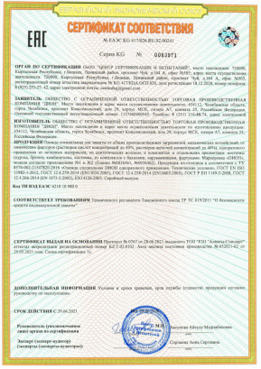 Наша продукция имеет сертификат соответствия и акт экспертизы Минпромторг России, подтверждающие ее качество и безопасность.